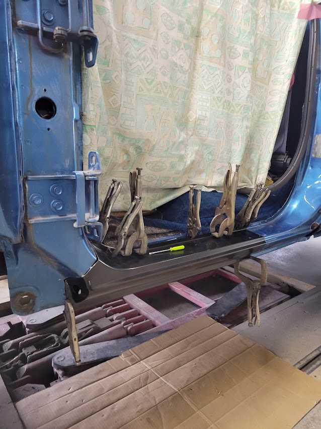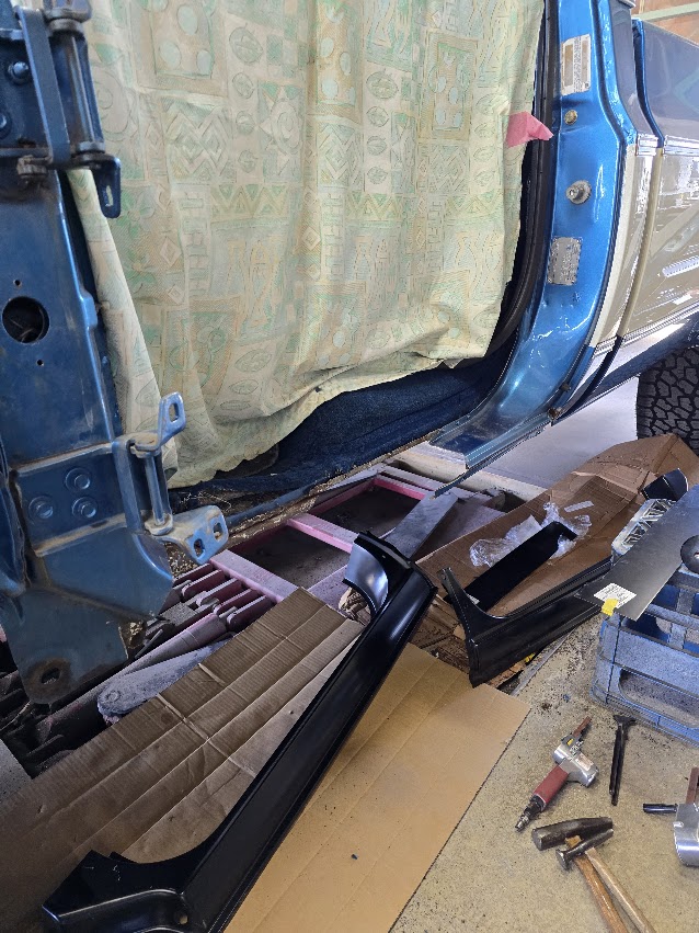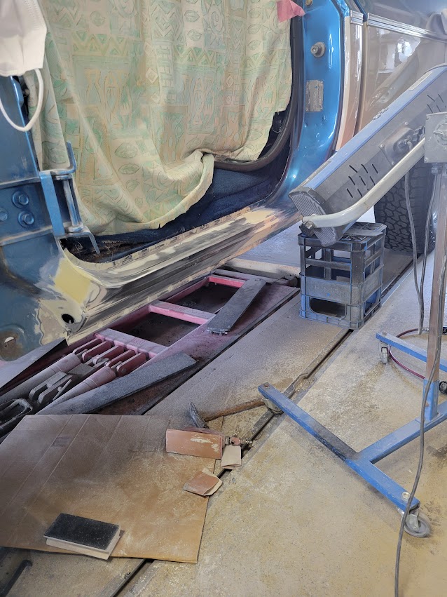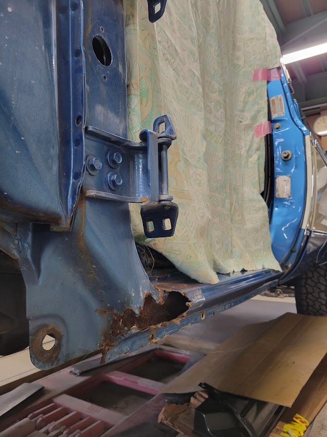 シボレーのサイドシルステップの錆による穴埋め修理依頼です。
